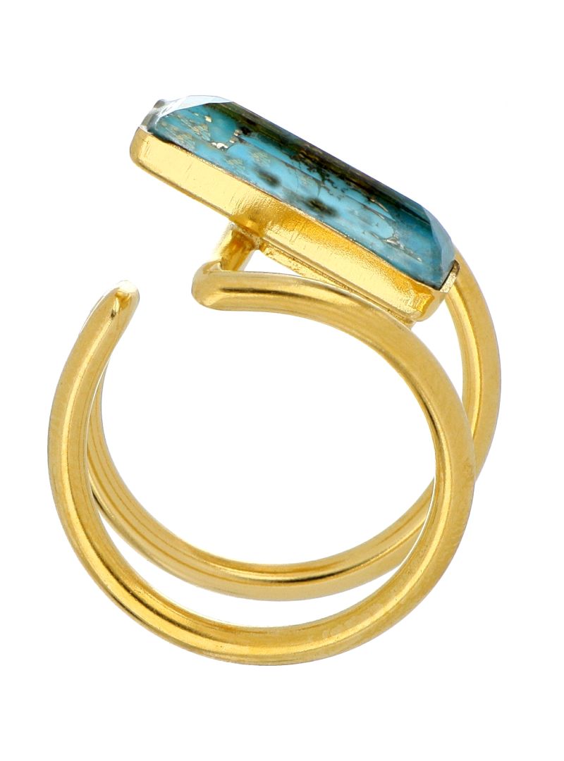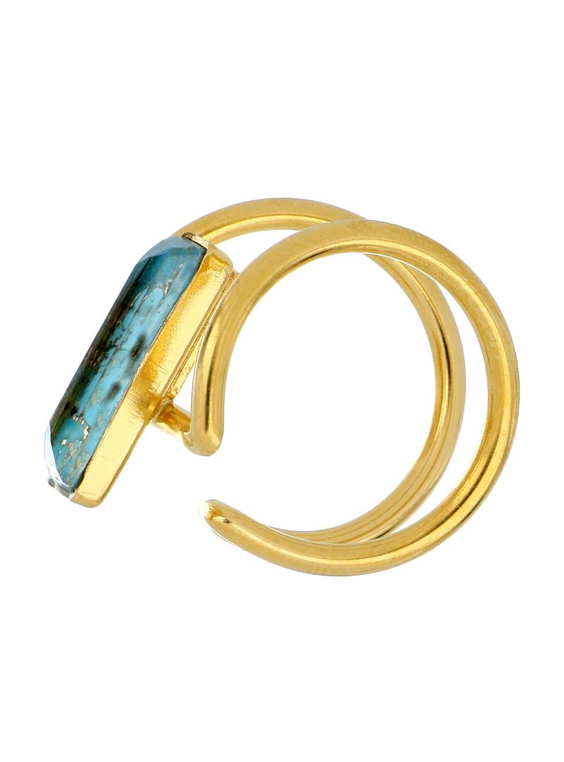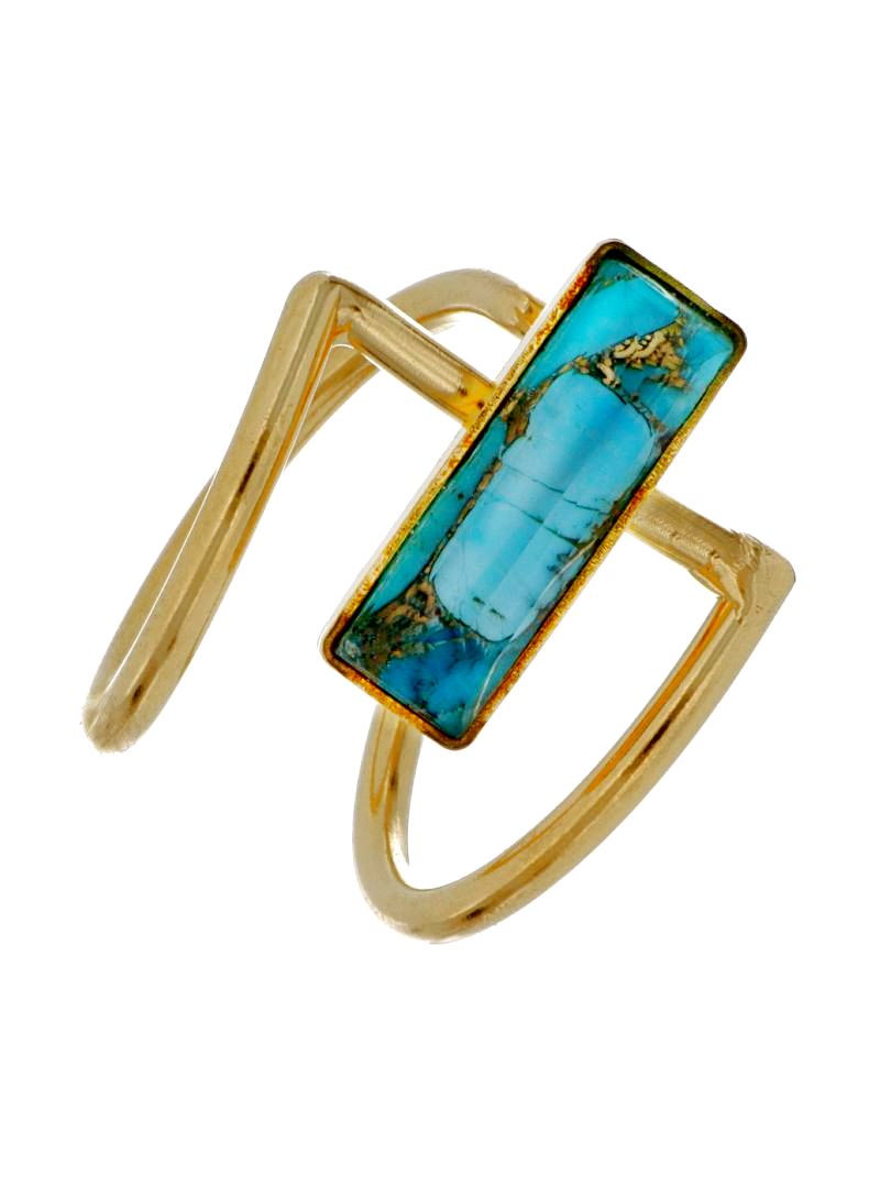 Bague de couleur dorée ouverte et réglable, sertie d’une pierre en Apatite bleue.