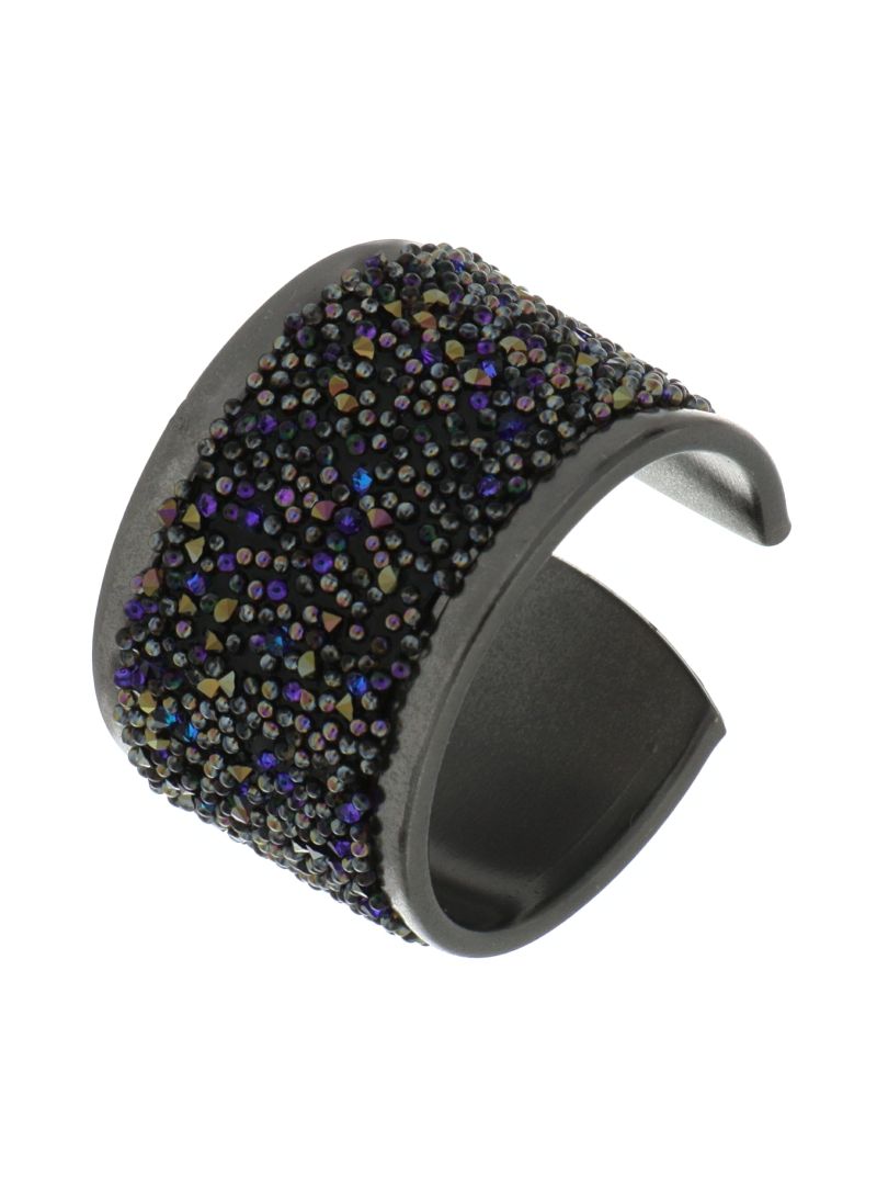Bague de couleur anthracite ouverte et réglable, sertie entièrement de Swarovski.