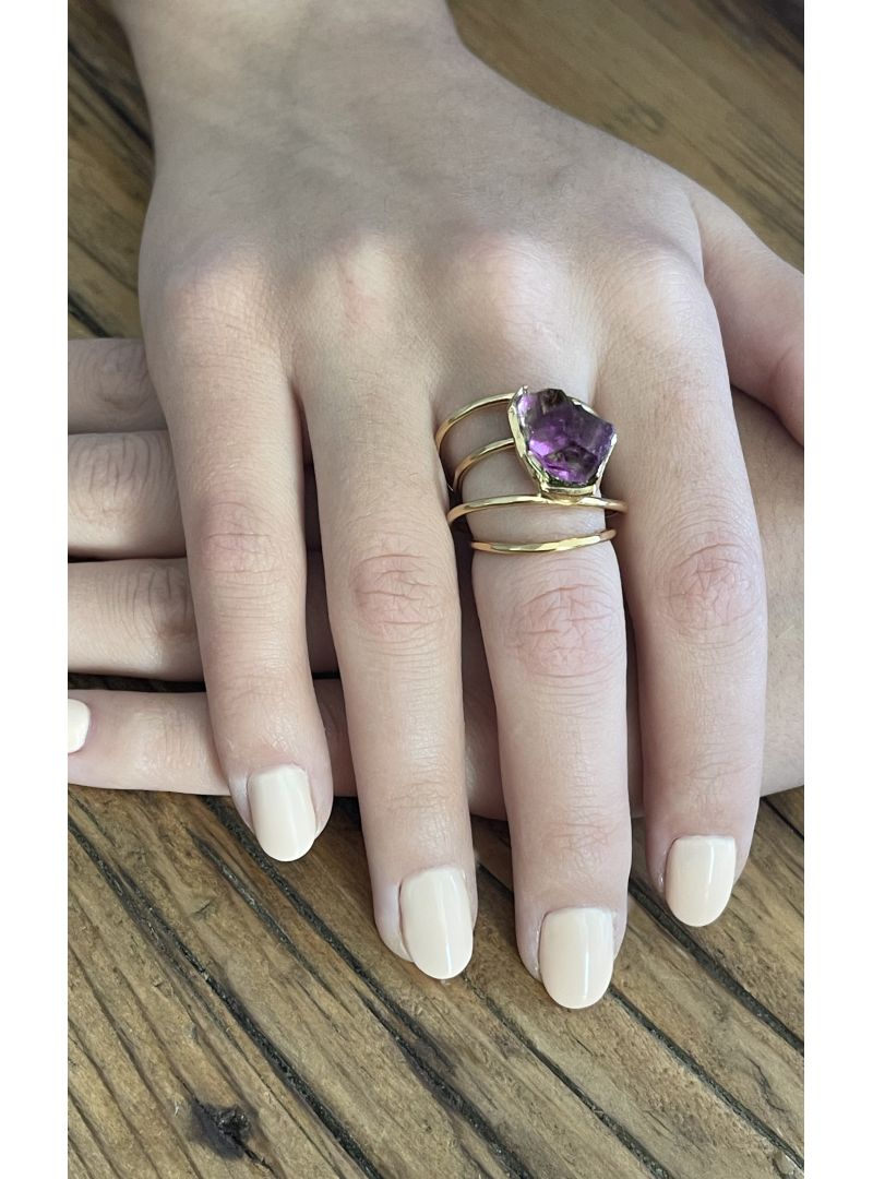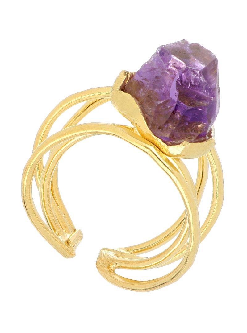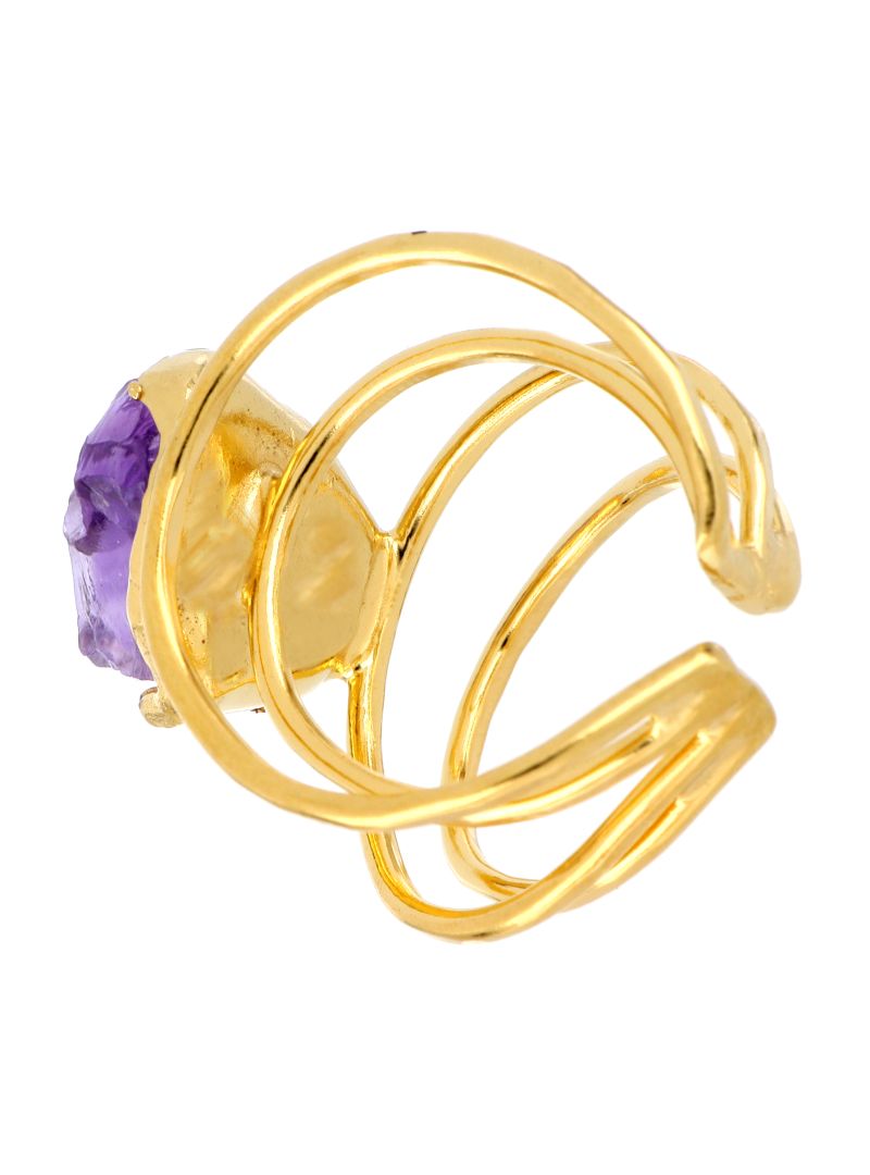 Bague de couleur dorée ouverte et réglable, sertie d’une pierre en Améthyste.