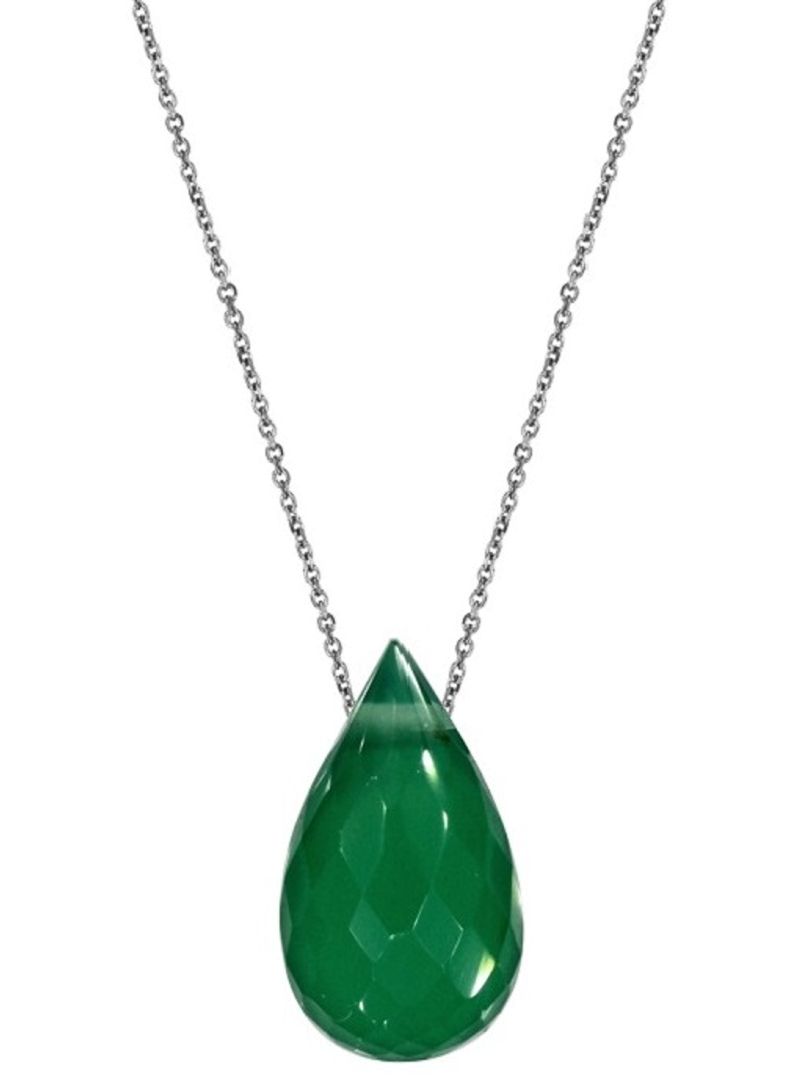 - Collier 42+3 cm Calcédoine 8×15 mm Forme Goutte argent 925 rhodié