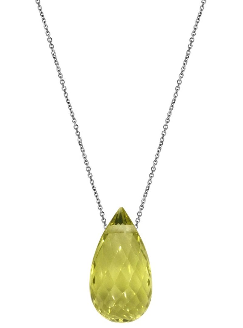 - Collier 42+3 cm Citrine 8×15 mm Forme Goutte argent 925 rhodié