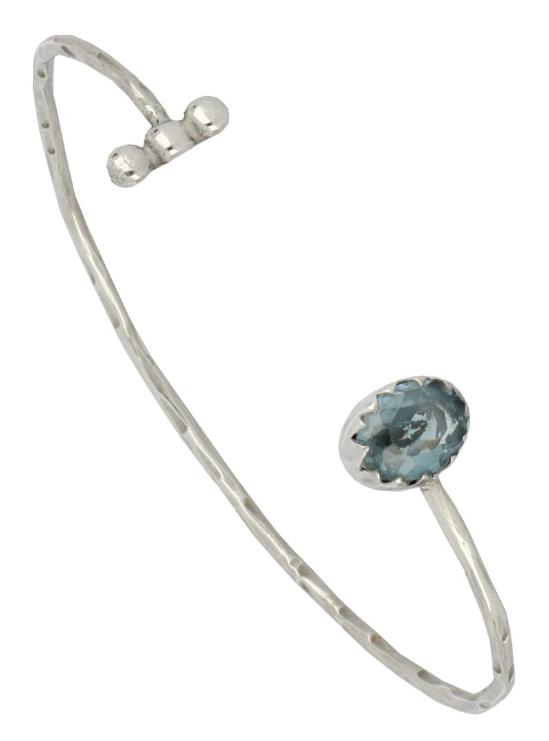 Bracelet ouvert et réglable en argent 925 avec une pierre sertie en Aigue-Marine.