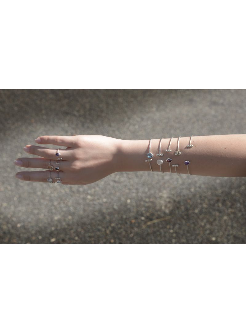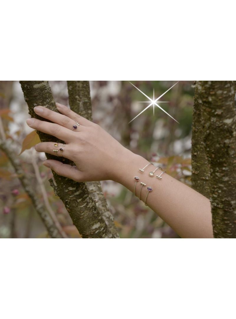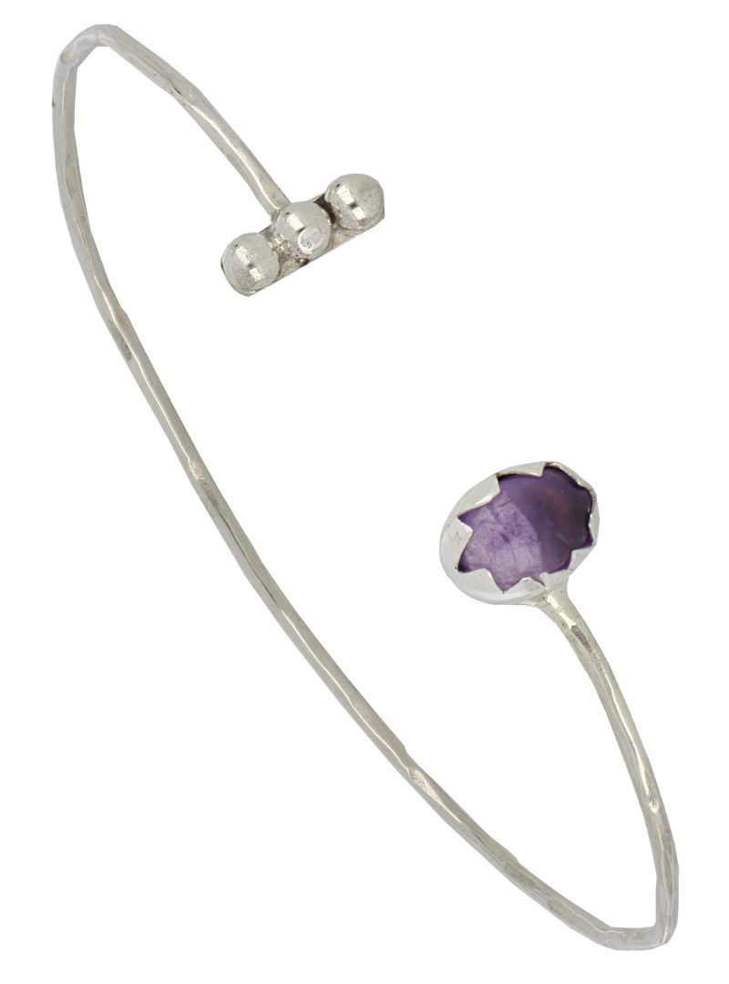 Bracelet ouvert et réglable en argent 925 avec une pierre sertie en Améthyste.