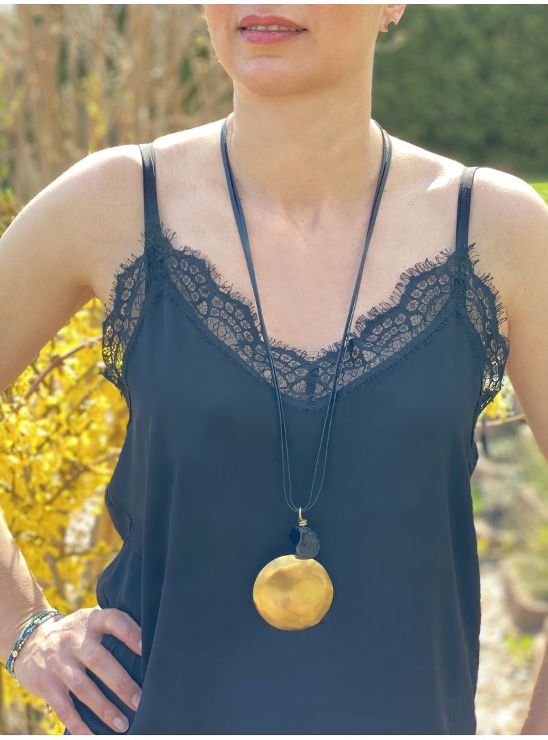 Collier réglable jusqu’à 60 cm, porté long ou près du cou, son élégance reste unique.
