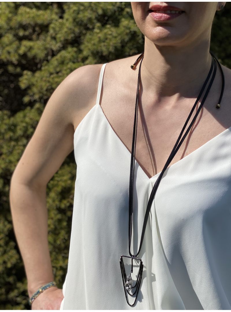 Collier réglable jusqu’à 60 cm, porté long ou près du cou, son élégance reste unique.